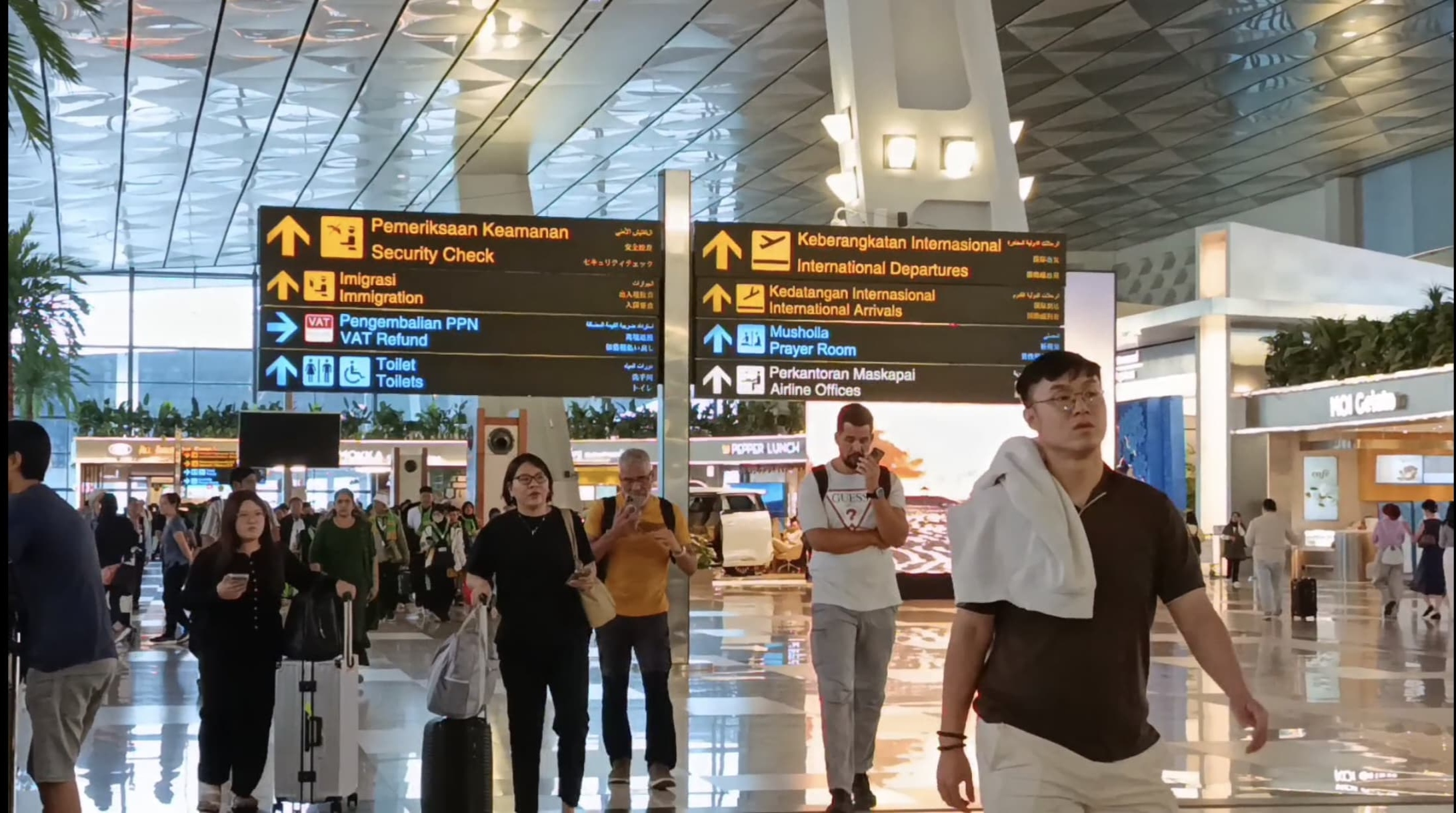 Secara kumulatif, sejak pecahnya konflik pada 28 Februari hingga 5 Maret 2026, tercatat 105 penerbangan rute Timur Tengah dari dan menuju Bandara Soekarno-Hatta mengalami pembatalan.