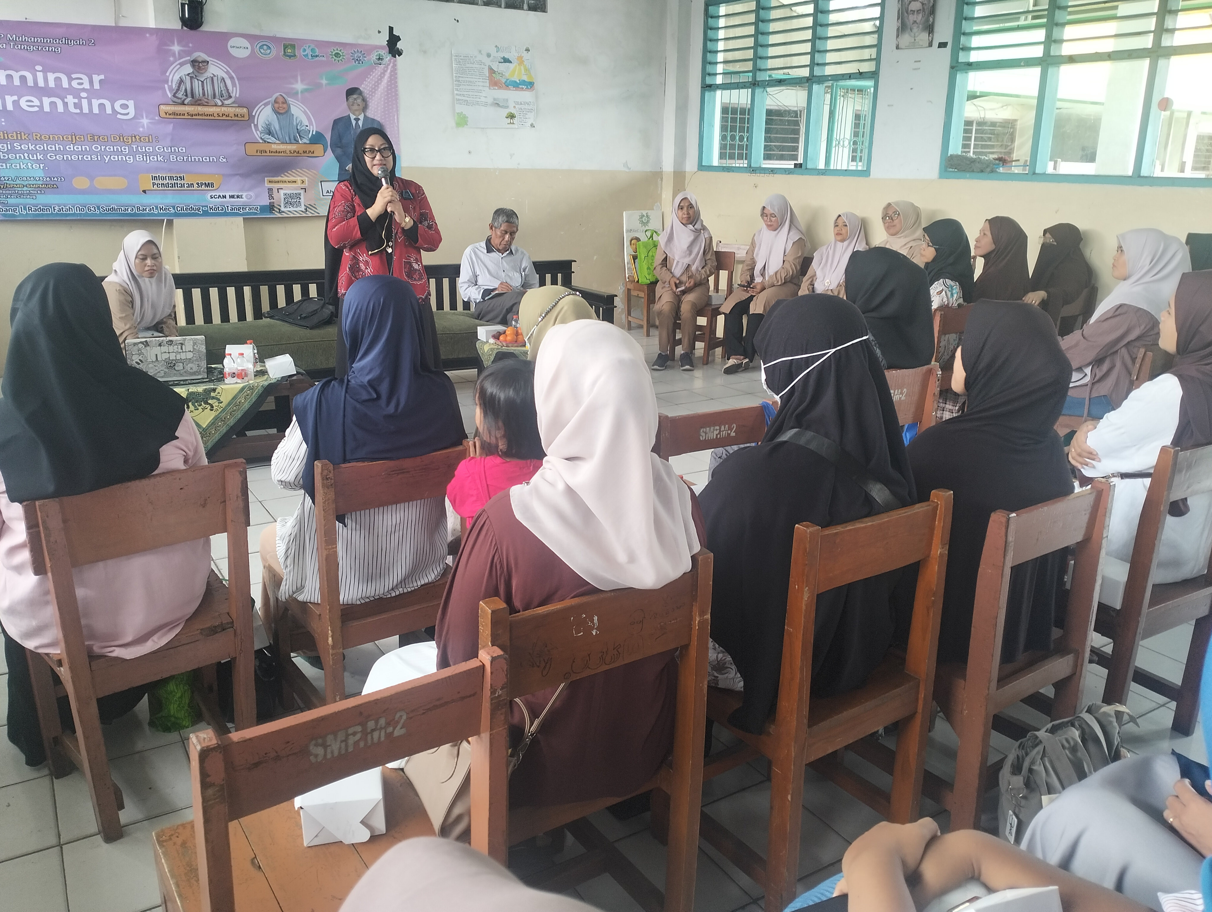 Bekerja sama dengan SMP Muhammadiyah 2 Tangerang, Dinas Pemberdayaan Perempuan, Perlindungan Anak, Pengendalian Penduduk, dan Keluarga Berencana (DP3AP2KB) Kota Tangerang memberikan edukasi pola asuh sehat di era digital pada Kamis (23/04/26).