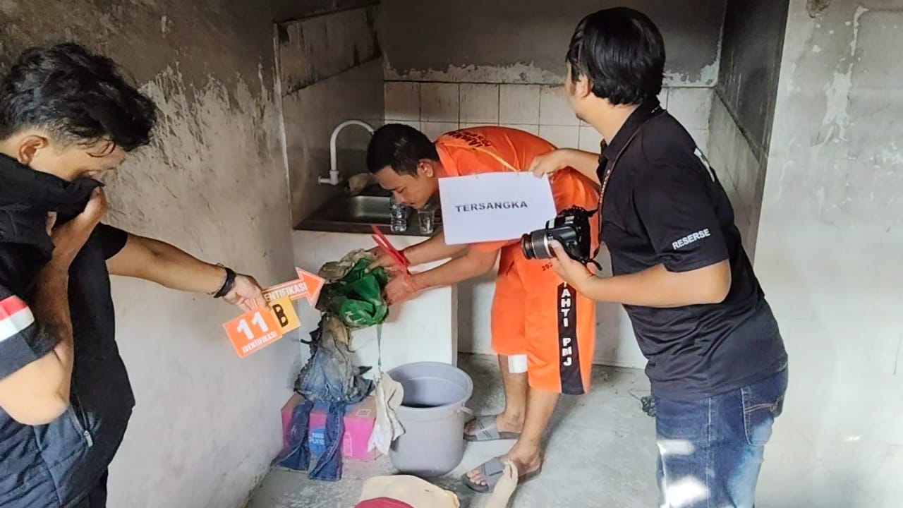 Rekonstruksi dilakukan langsung di TKP di dalam kamar kontrakan di Kampung Kresek, Deda Rawa Burung, Kecamatan Kosambi, Kabupaten Tangerang, tersangka Heri Budiman dihadirkan penyidik di lokasi.
