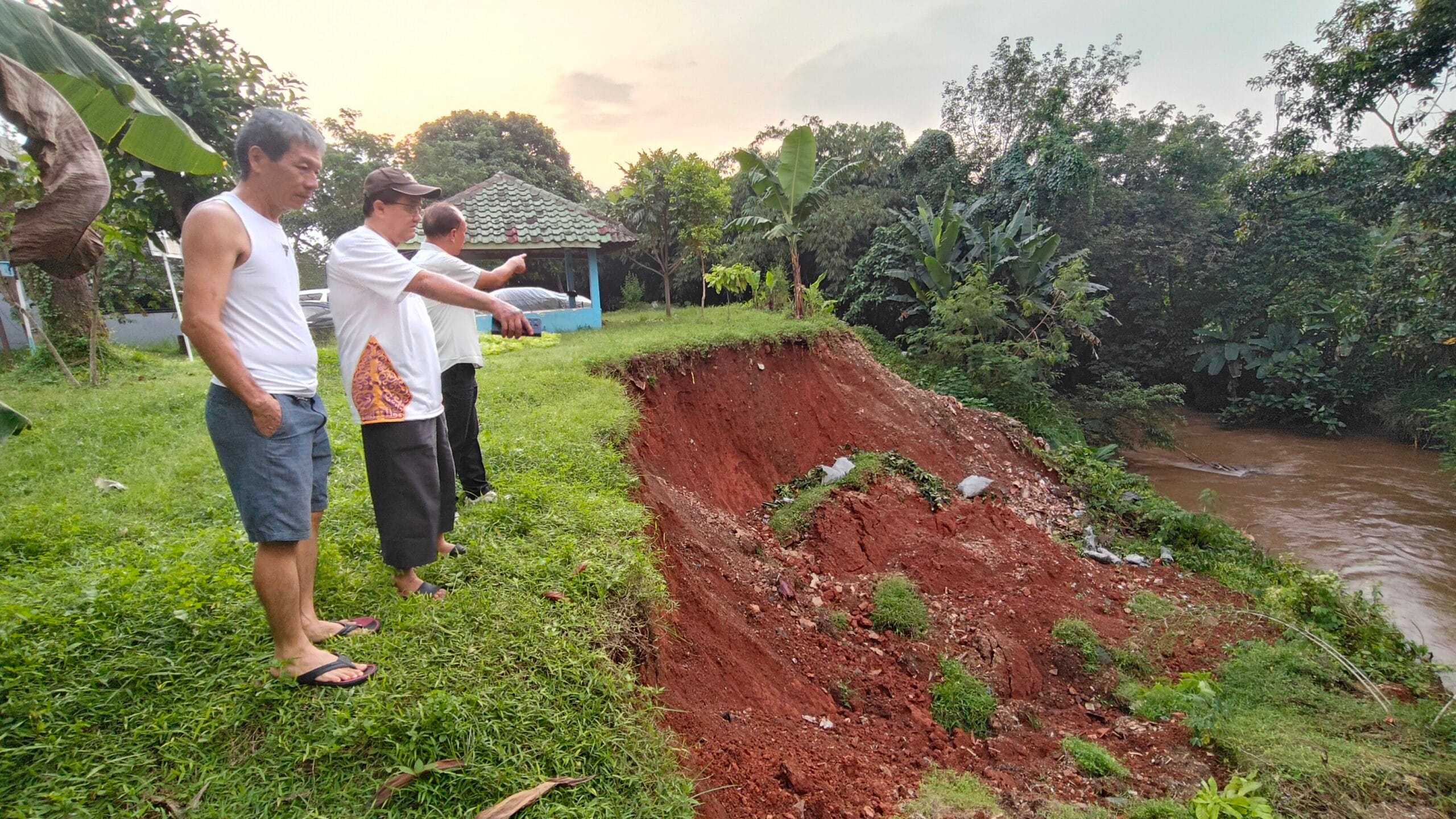WARTAXPRESS.com – Turap sepanjang kira-kira 15 meter, longsor sebagai penahan aliran air sungai Angke di Perumahan Sektor 14,5 Nusa Loka, Kelurahan Rawa Mekar Jaya, Kecamatan Serpong, Tangerang Selatan (Tangsel) pada Selasa 08 Juli 2025, Malam.