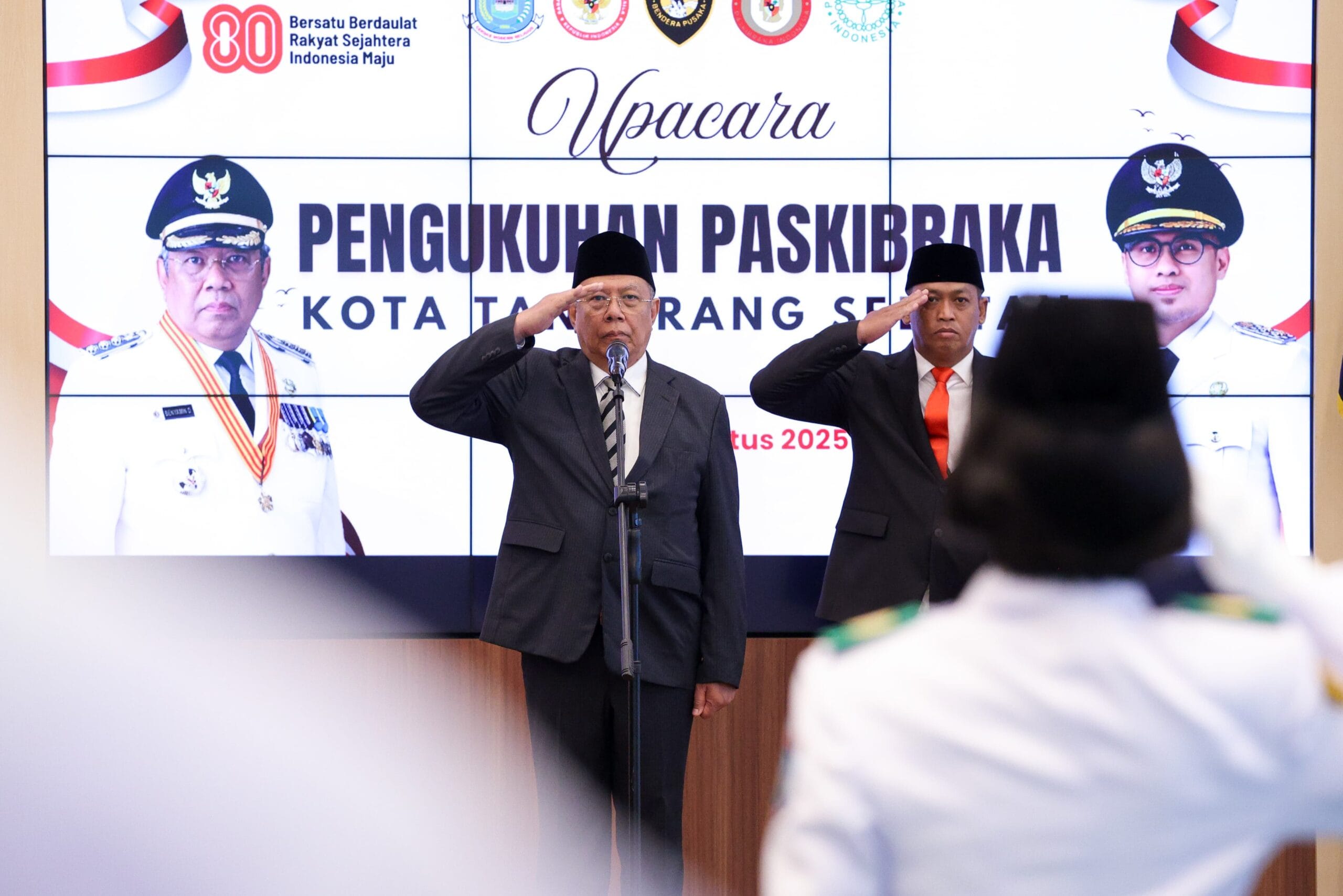 WARTAXPRESS.com – Wali Kota Tangerang Selatan, Benyamin Davnie, resmi mengukuhkan 50 anggota Pasukan Pengibar Bendera Pusaka (Paskibraka) tahun 2025 di Aula Blandongan, Puspemkot Tangsel, Jumat 15 Agustus 2025. Mereka terdiri dari 24 putra dan 26 putri hasil seleksi dari SMA/SMK se-Tangsel.