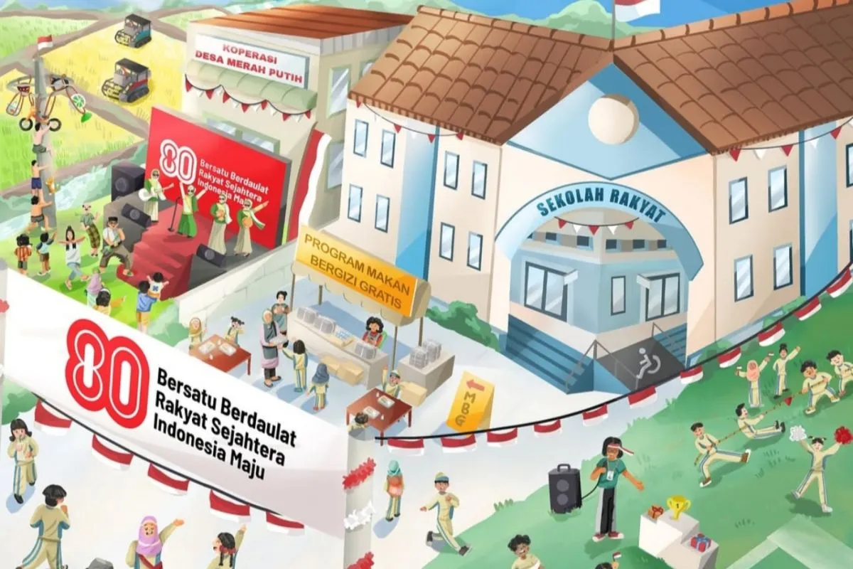 Unggahan tersebut juga menampilkan ilustrasi program prioritas pemerintahan Presiden Prabowo, antara lain Sekolah Rakyat, Makan Bergizi Gratis, dan Koperasi Desa/Kelurahan Merah Putih.