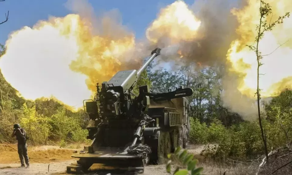 Ilustrasi serangan Ukraina ke Rusia. (AP Photo/Danylo Antoniuk)