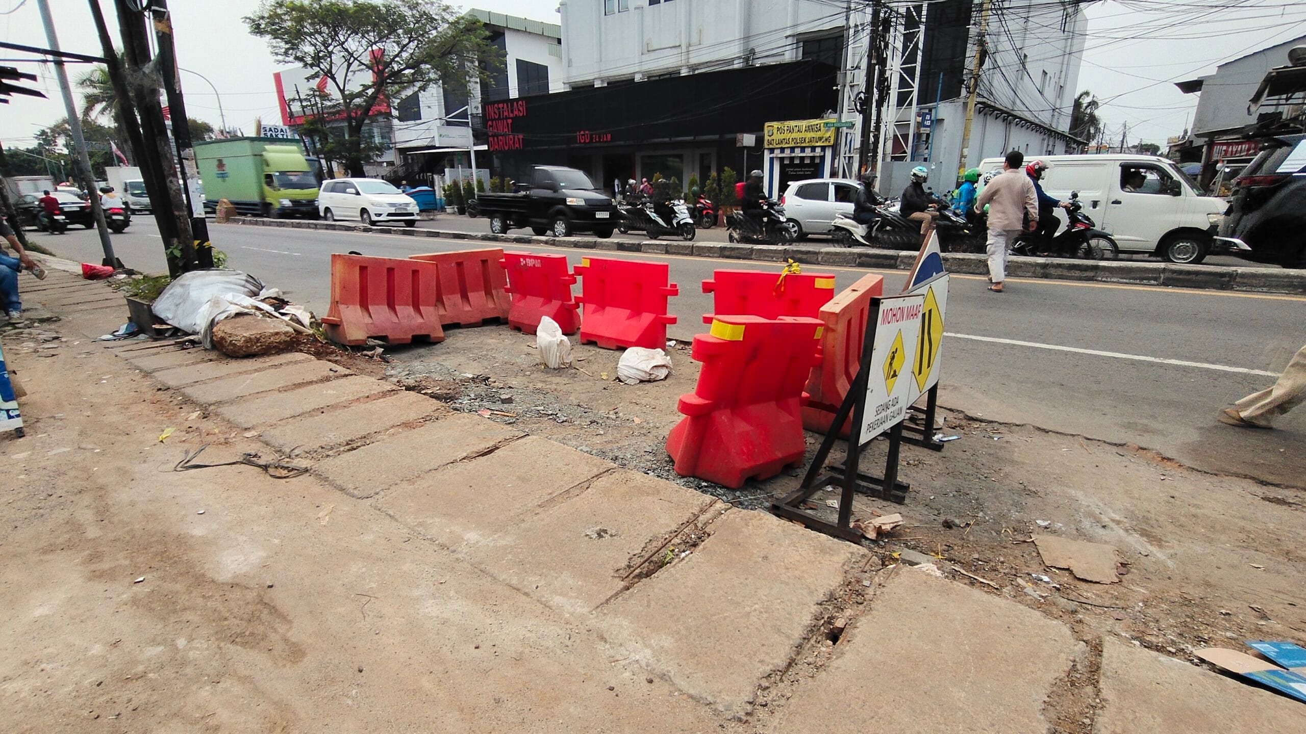 Lubang galian yang dibiarkan terbuka menyebabkan badan jalan menyempit dan menimbulkan kemacetan parah, terutama di jam sibuk. Selain itu, kondisi jalan yang rusak parah akibat proyek ini juga meningkatkan risiko kecelakaan, terutama bagi pengendara sepeda motor.