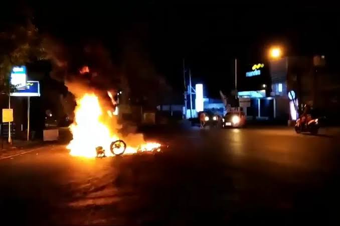 “Alhamdulillah untuk dua pengendara dalam kondisi baik-baik saja, namun kendaraan motor ya terbakar dilokasi,”Ungkapnya.