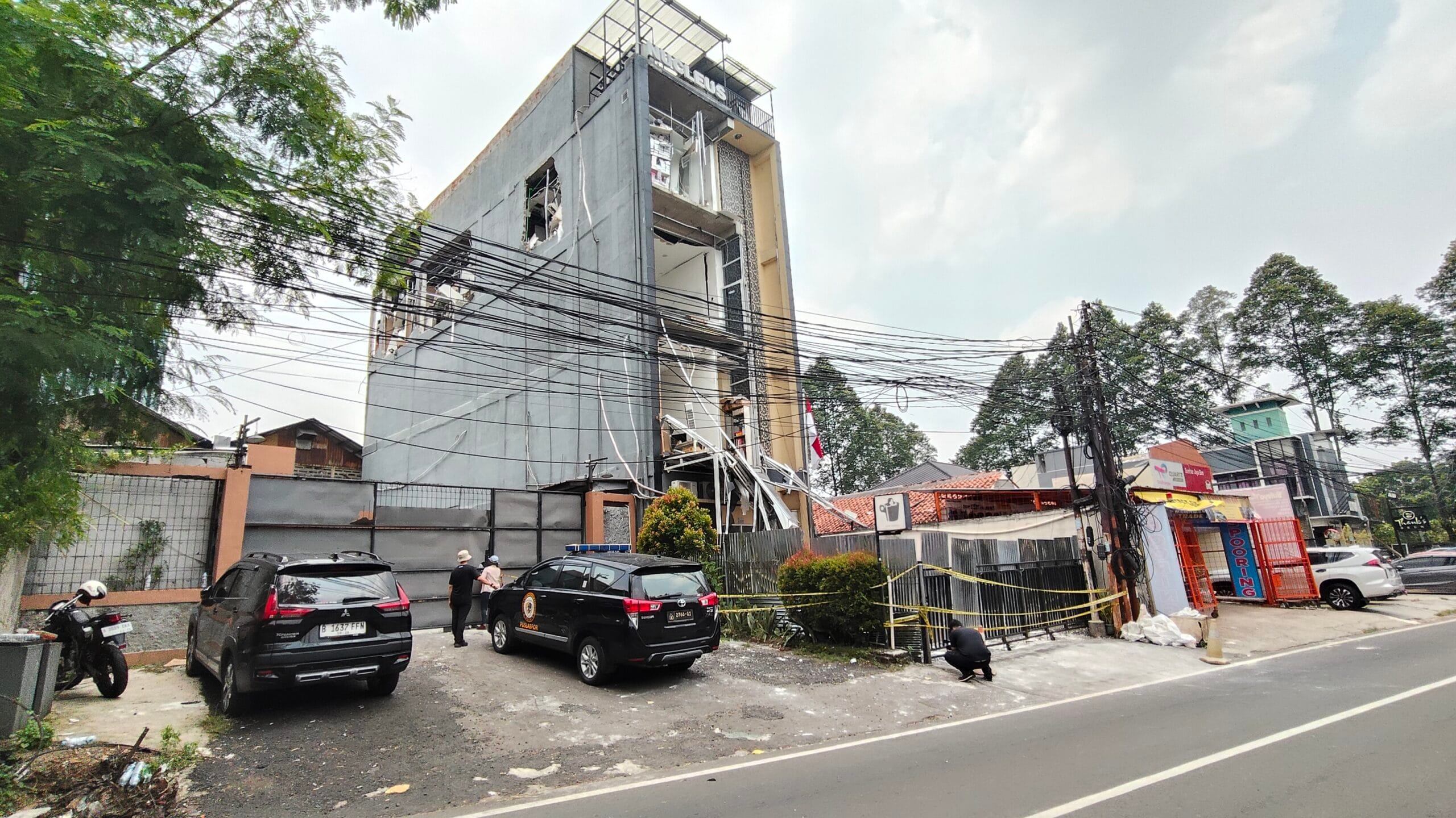 Ledakan tersebut mengakibatkan bagian depan bangunan hancur, kaca-kaca pecah berserakan, serta struktur bangunan yang nyaris roboh.