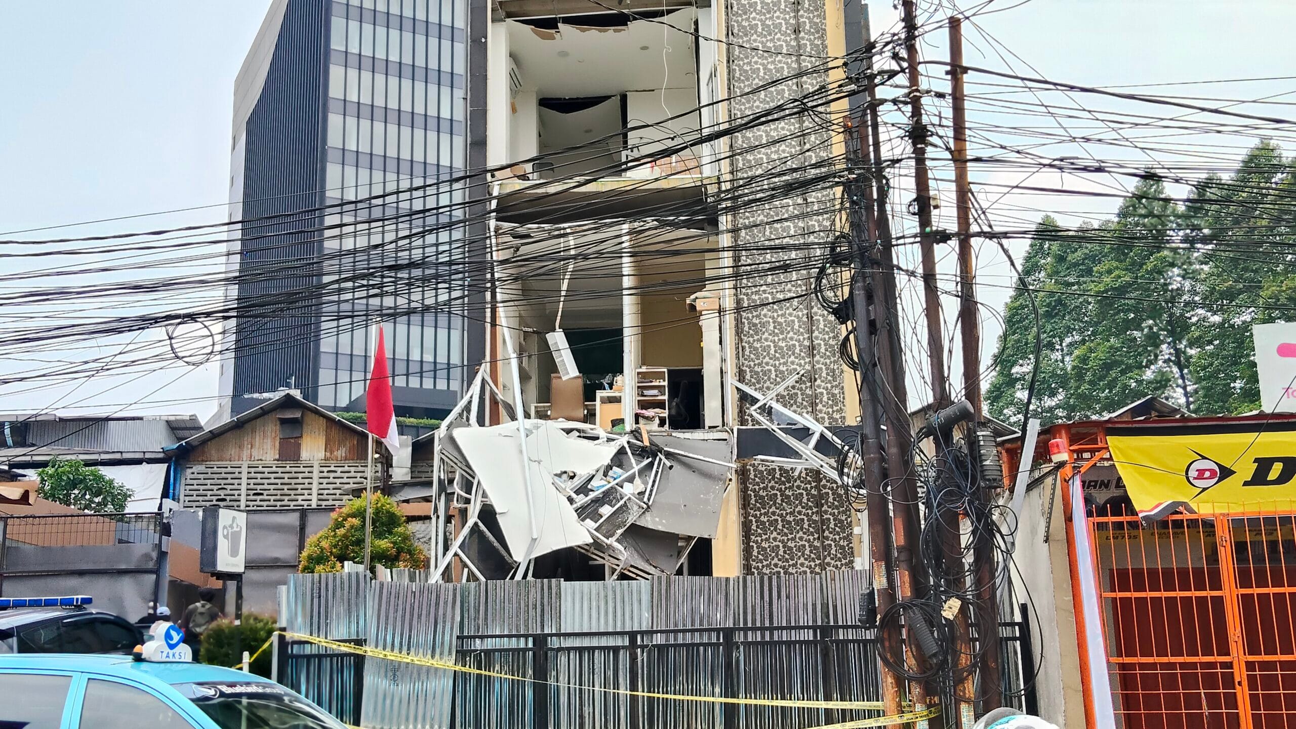 Kondisi gedung usai meledak di pondok aren, Kamis 09 Oktober 2025.
