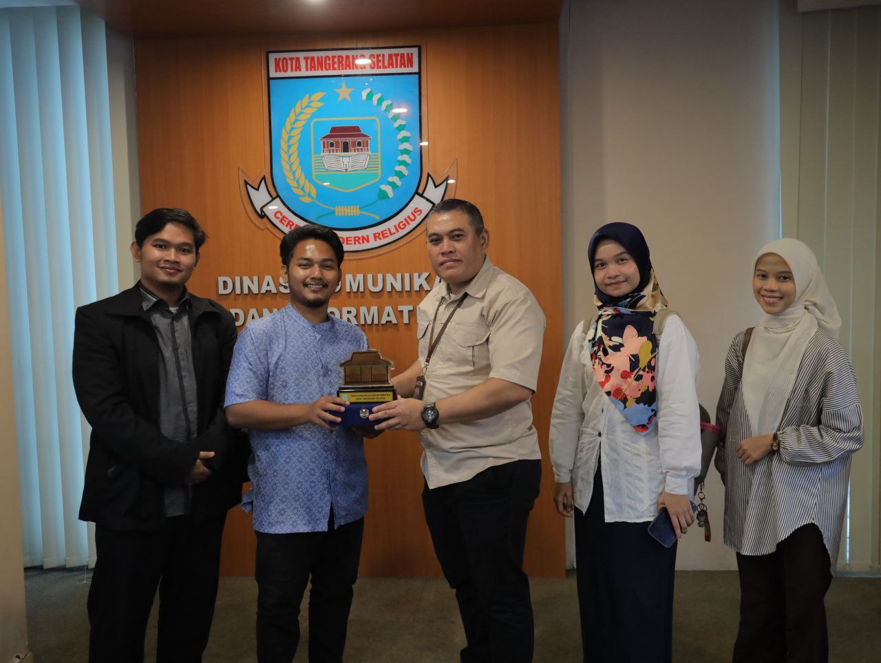 Puluhan siswa terlihat antusias mengikuti tur edukasi keliling kantor Diskominfo Tangsel. Mereka diajak melihat ruang kerja kehumasan, area podcast, serta sarana lain yang ada dan diperbolehkan untuk publik.