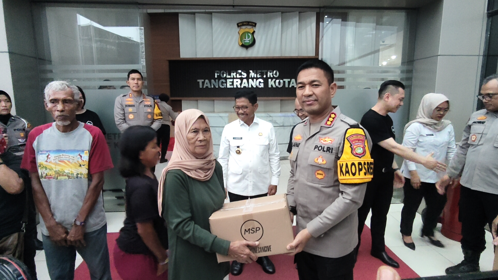 Sebanyak 1.000 paket sembako dibagikan kepada warga yang tinggal di wilayah hukum Polres Metro Tangerang Kota pada Rabu 3 Desember 2025.