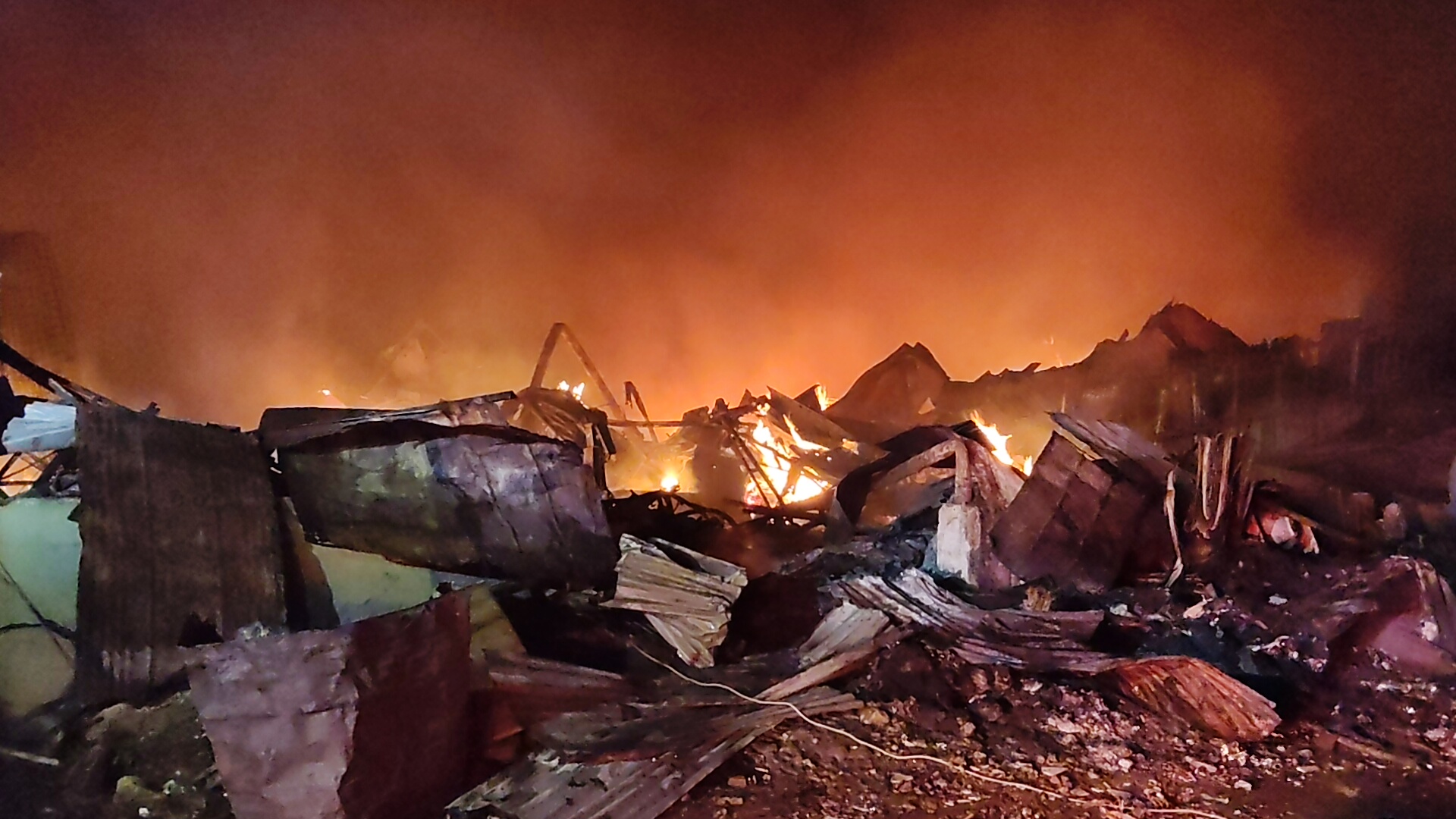 Berdasarkan rekaman video amatir warga, kobaran api terlihat dengan cepat membesar dan membakar lapak limbah beserta material mudah terbakar di sekitarnya. Banyaknya bahan yang mudah terbakar serta bangunan yang sebagian besar terbuat dari kayu membuat api dengan cepat merembet ke bangunan lain di sekitar lokasi kejadian.