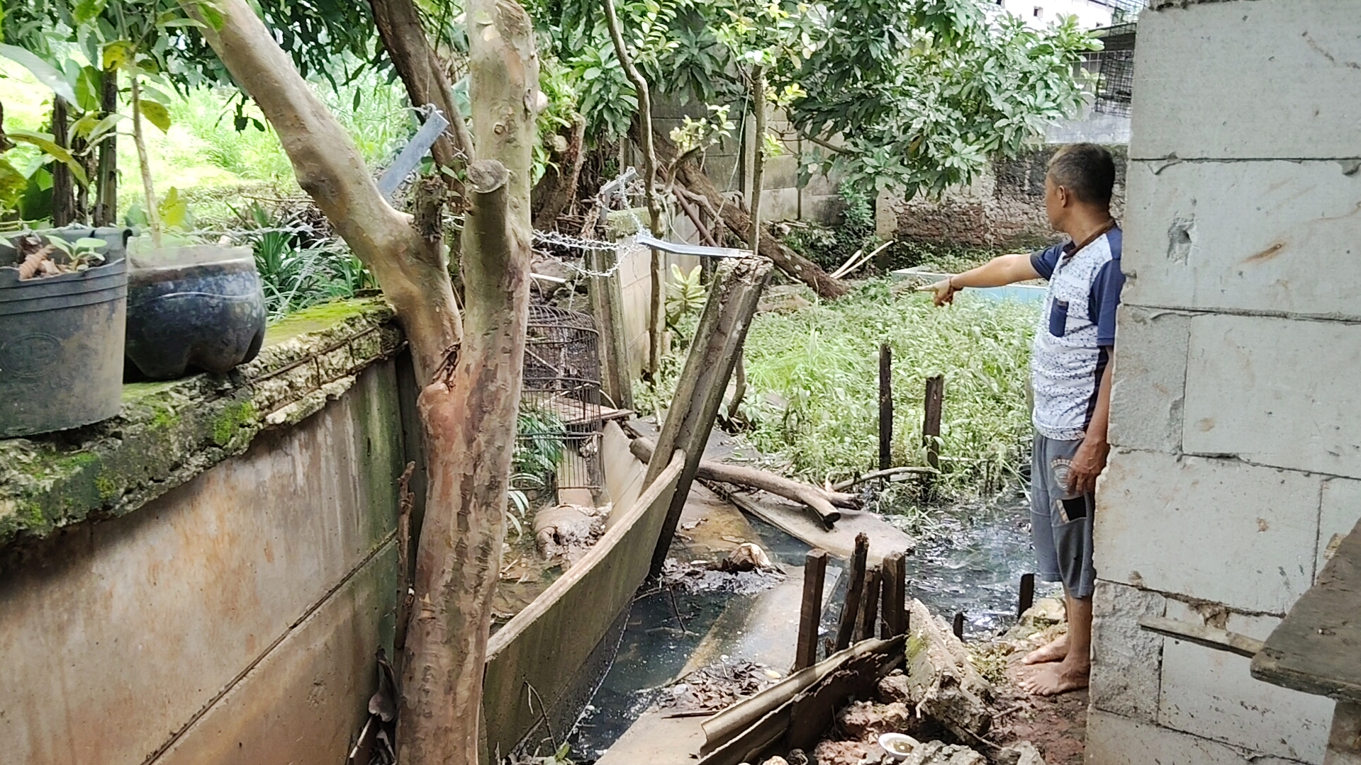“Mungkin karena tidak kuat menahan air dari arah tol JORR itu. Hujan besar, beban air banyak, akhirnya jebol. Jalur air sebenarnya ada, cuma kecil, jadi air meluap ke rumah warga,” tambahnya.