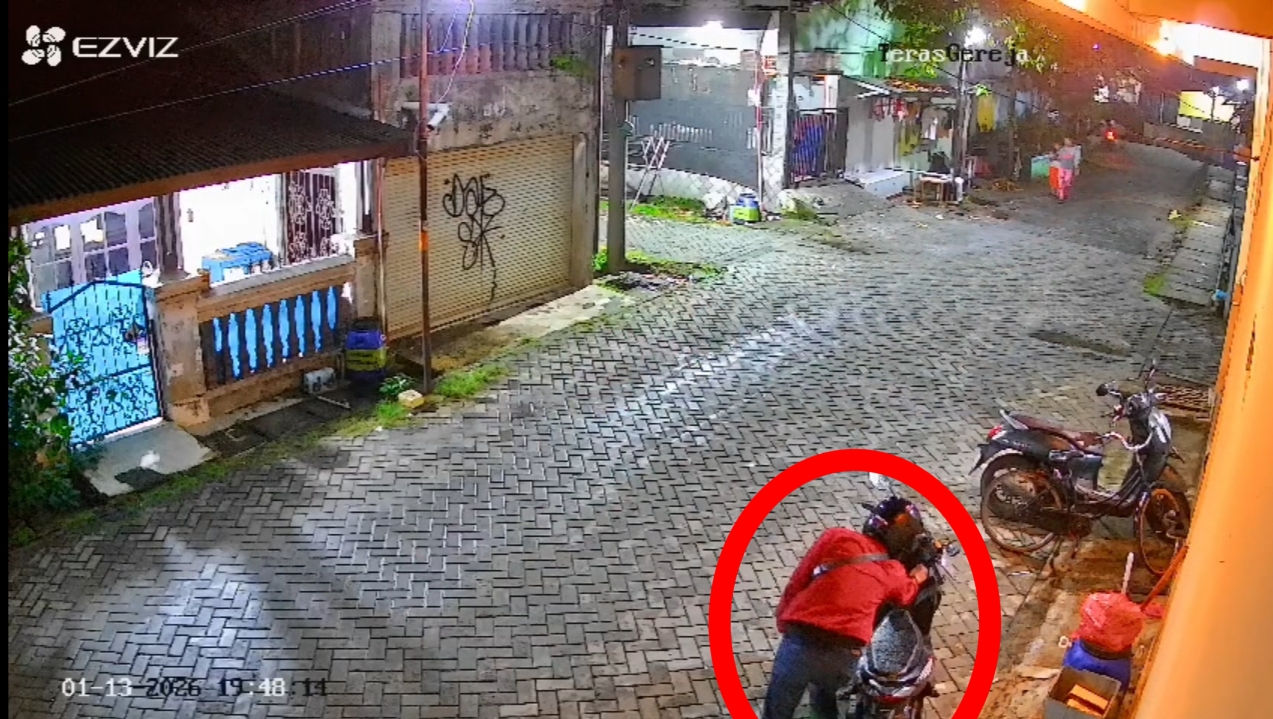 Untuk menghindari kecurigaan, pelaku sempat menuntun motor incaran menjauhi pintu pagar sebelum akhirnya membobol kunci motor menggunakan kunci Letter T. Proses eksekusi tersebut berlangsung sangat cepat, kurang dari satu menit.