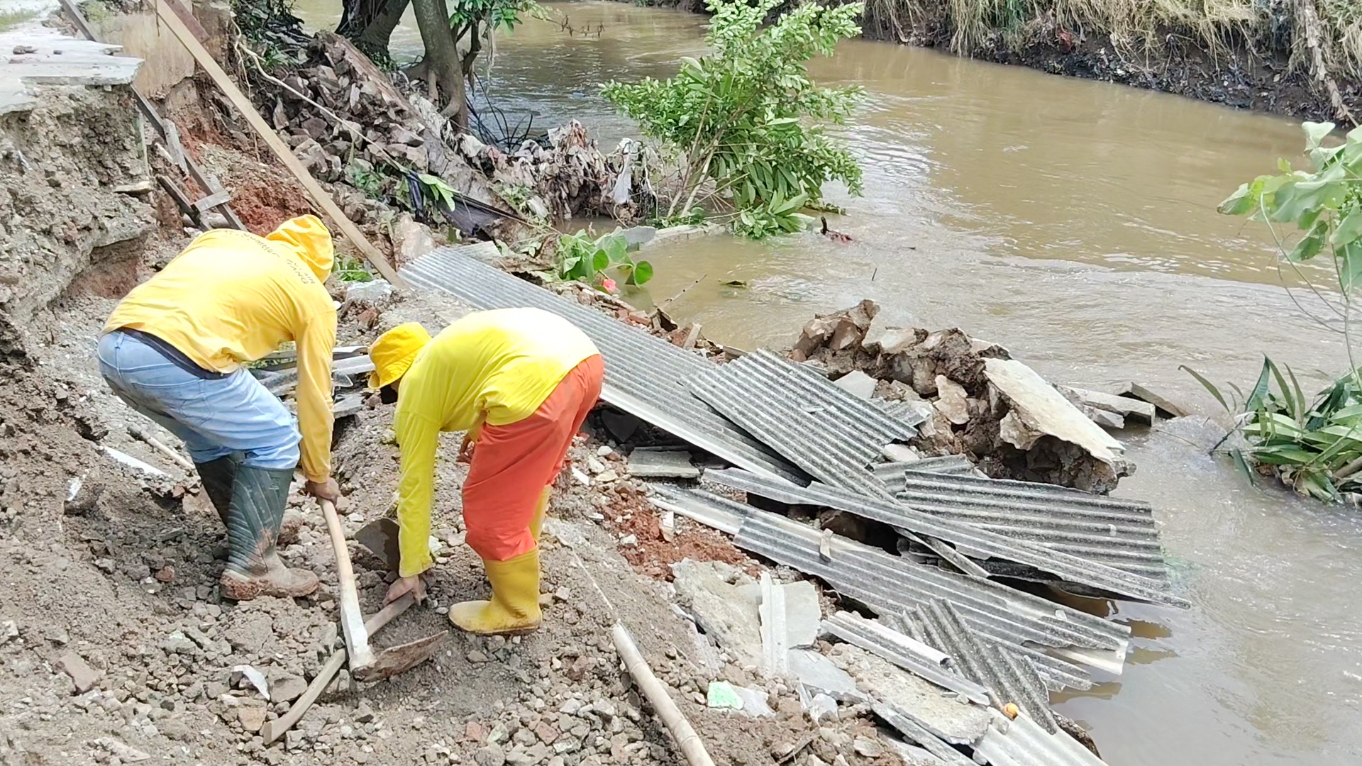 Mendapat laporan dari warga, petugas Dinas Pekerjaan Umum dan Penataan Ruang (PUPR) Kota Tangerang bergerak cepat melakukan penanganan darurat. Petugas membangun tanggul sementara menggunakan batang bambu dan karung pasir guna mencegah longsor susulan.