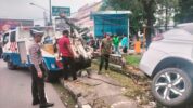 Gerak Cepat, Kanit Laka lantas Evakuasi Mobil Tabrak Pagar Ruko di Melati Mas